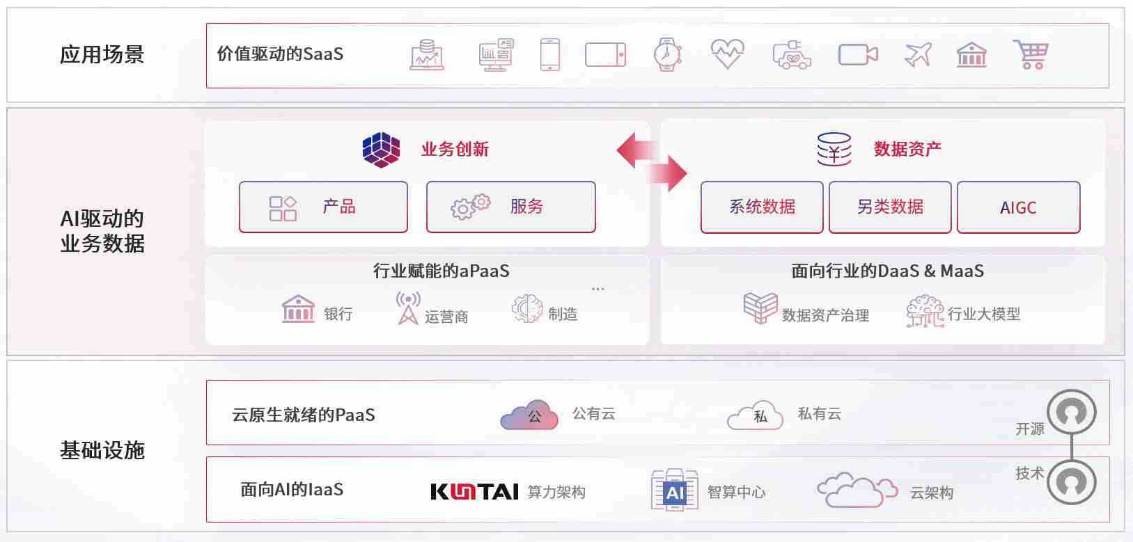 数字时代,,,围绕企业数字化转型的关键要素,,,PA直营数码开创性的提出数云融合战略和技术体系框架,,,,着力在云原生、、、、数字原生、、、、AI原生和信创产业上架构产品和服务能力,,为处在不同数字化转型阶段的快消零售、、汽车、、、、金融、、、医疗、、、政企、、教育、、、、运营商等行业客户提供泛在的敏捷IT能力和融合的数据驱动能力,,,构建跨界融合创新的数字业务场景和新业务模式,,,助力企业级客户建立面向未来的核心能力和竞争优势,,全面推动社会的数字化、、、、智能化转型升级。。。。